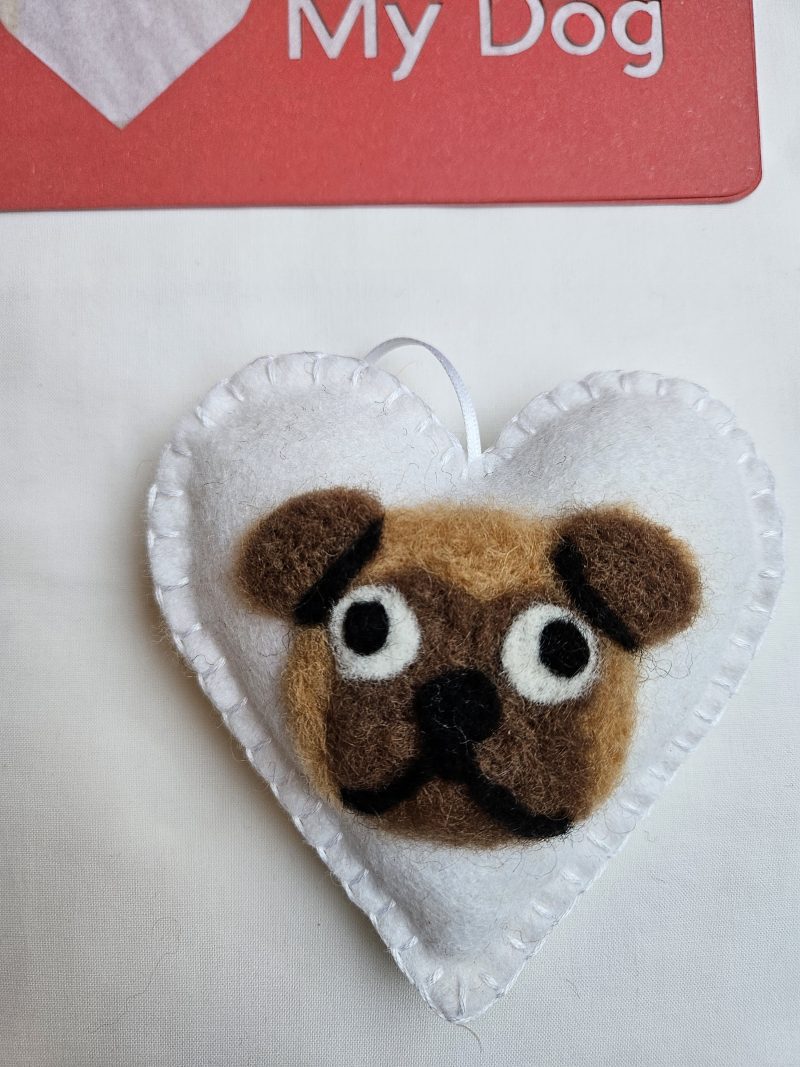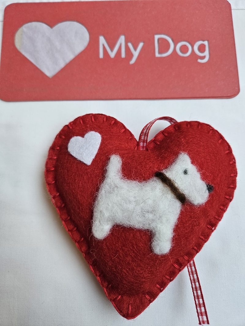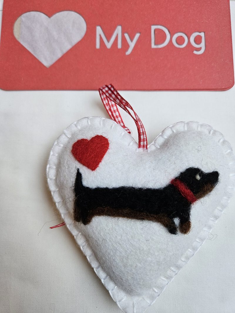 These Felted Dog Heart Decorations make great gifts for the Dog lovers in your life.