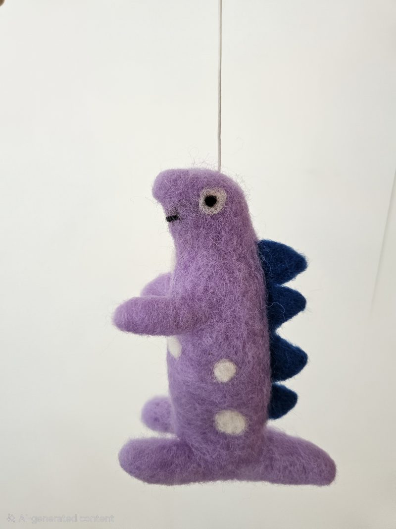 Transform your little one’s nursery or bedroom with this enchanting Purple Felt Dinosaur Mobile .